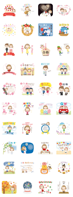 前髪短めな女の子のなんでも行事スタンプ スタンプ情報
