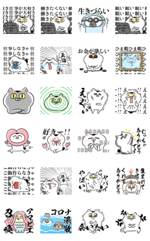 生きづらいというタイトルの如く、生きるのが下手そうな猫のスタンプ。親近感が湧くものが多い。