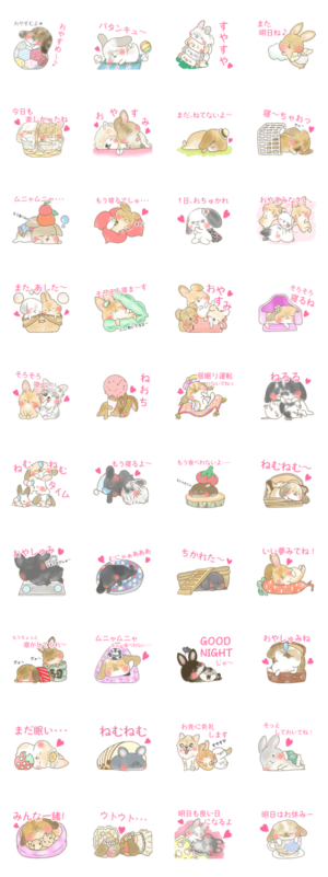 おやすみ、眠い時によく使える!うさぎちゃんたちのかわいいキュートなスタンプです。