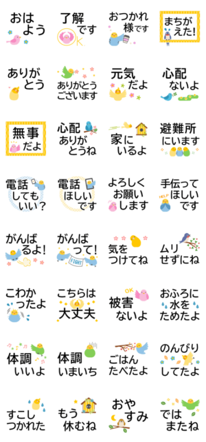 大きい文字で災害の時も使えるスタンプです。日頃から使っておくといいです。