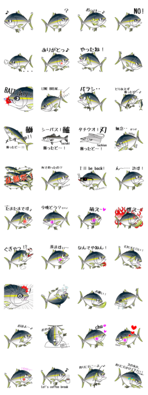 ちょっとHなカワイイお魚スタンプです。ショアジギングでのターゲット、青物といえばブリ!ルアー釣り会話にお役立て下さい。タチウオやシーバスも入っています。AHO AHO BRAINS - ahoaho U-kun より発売