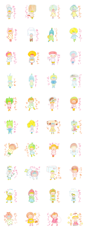 食べ物たちの楽しいダジャレのスタンプ。毎日の日常会話、挨拶、イベントまで。ゆるくかわいく面白く会話を盛り上げます。pumpkin より発売