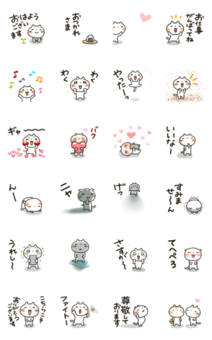 デフォルメされたしろねこのスタンプです。ゆるくてかわいいスタンプをラインに飾って癒されましょう!