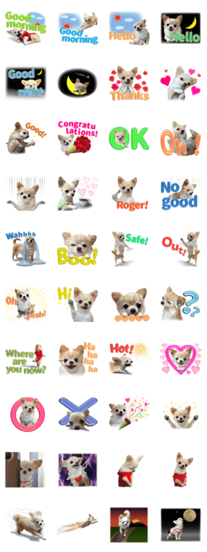 我が家のチワワの写真を使った、リアルな写真スタンプです。日本以外でも使えるように英語の台詞にしています。犬好きの方に、おすすめのスタンプです。oto3スタンプ より発売