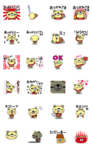 ほのぼのクマが動いて日常会話をお手伝い♪ありがとう、了解、OK、おつかれ、よろしくなど基本の言葉セットです。敬語も入ってます。