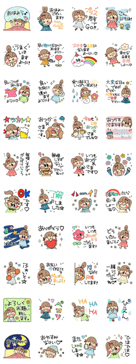 大人女子♡の日常的に使えるスタンプのスピンオフVerです!見やすい文字と,かしこまりすぎない絵柄で,挨拶,励まし,気遣い等の言葉中心に収録した元気になれるセットです♪rinko より発売