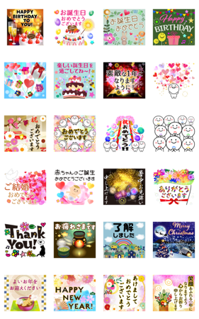 ずっと使える大人の誕生日とお祝い・年賀状 スタンプ情報
