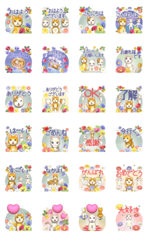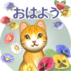 カワイイねこ&花のポップアップスタンプです。男性、女性、子供から大人まで、挨拶や受け答えに使えます。yosionoko より発売