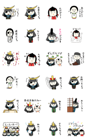 奥州・仙台おもてなし集団「伊達武将隊」といぎなしなまってる宮城のご当地キャラ「仙台弁こけし」のコラボスタンプ第2弾だっちゃ〜!jugo より発売