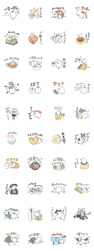 ダジャレに文鳥さんを添えたスタンプ、第三弾です。 文鳥さんが好きな方、鳥好きな方、ダジャレが好きな方、そうでない方も、ぜひ一押ししてみて下さい。ゆひろ より発売
