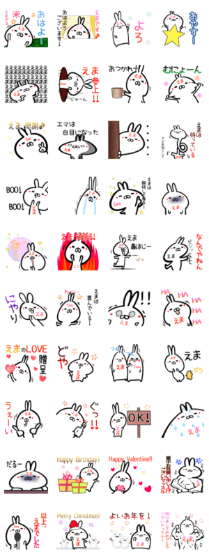 えまちゃん/エマさん用の可愛いウサギのゆるい名前(なまえ)あだ名スタンプ。恵麻/英麻/絵麻/栄麻/絵馬/江馬/英真/栄真/瑛茉/依舞/えまか/えまき/えまり/えまな等の名前専用むらびと【名前・アダ名のスタンプ&着せかえ制作】 より発売