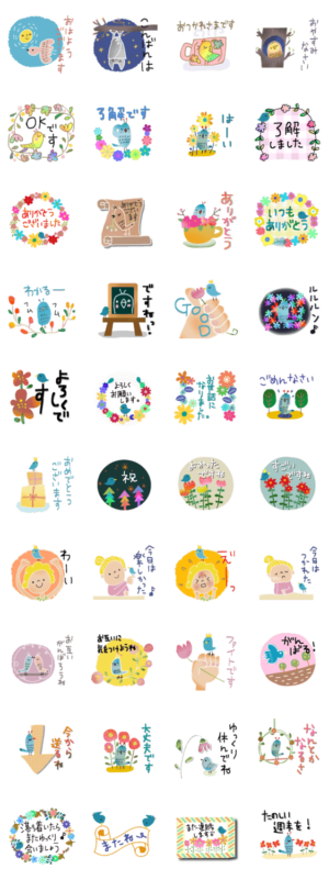 お花と鳥のスタンプ*定番フレーズ スタンプ画像一覧