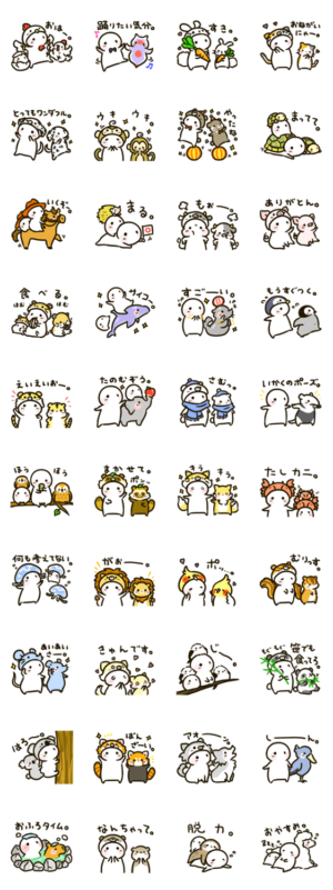 白くて丸いもち肌のいきもの。「しろまる。のゆるいスタンプ」第11弾は動物と一緒。きゃみ より発売