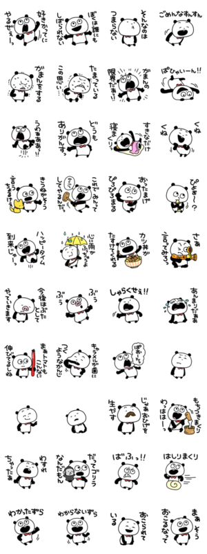 がまんしないぱんだ スタンプに書いてある文字一覧