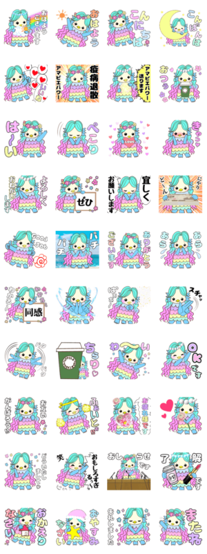 派手かわいアマビエお姉さん挨拶 スタンプ画像一覧