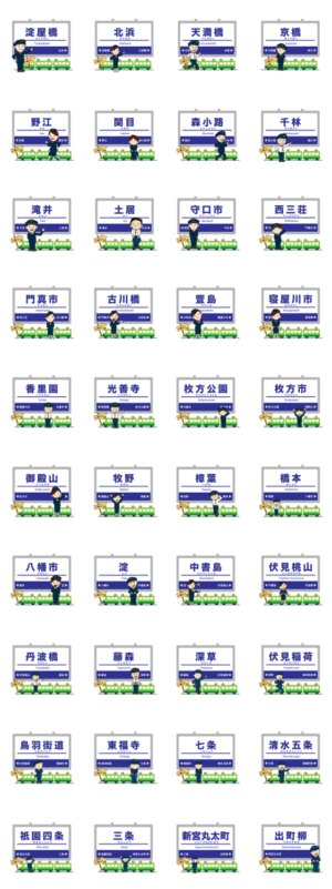 淀屋橋,北浜,天満橋,京橋,守口市,,門真市,古川橋,萱島,寝屋川市,香里園,光善寺,枚方市,御殿山,樟葉,淀,中書島,丹波橋,七条,清水五条,祇園四条,三条,新宮丸太町,出町柳などおもてなし より発売