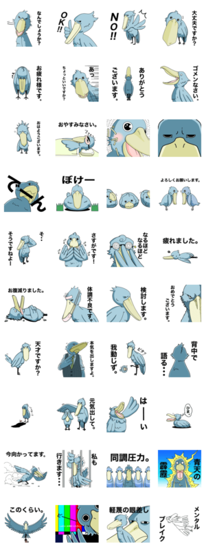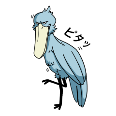 「動かない鳥」で有名な鳥ハシビロコウのスタンプ。キモ可愛い個性的な快鳥をご堪能あれ!くずもち より発売