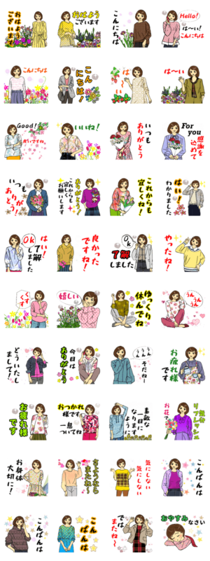 おしゃれ大人女子のスタンプ(春)のダウンロードはこちら↓