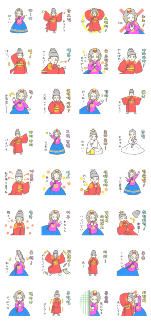 韓国ドラマ(特に時代劇)が好きな方のためのスタンプです。若者言葉を王様と王妃様に使ってもらいました。