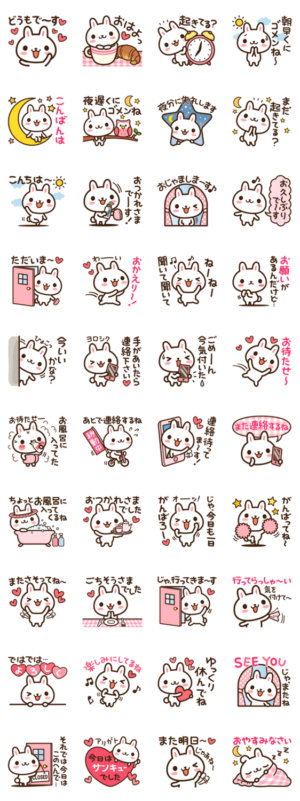 トークを始める時、終わる時に便利なスタンプ第3弾。ちょっぴり女子力高めなウサギがキュートにごあいさつ♪みーすけ より発売