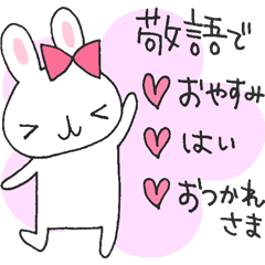 うさぎの「うさ美」の第三弾スタンプ!先輩へ挨拶するときに使える「おやすみ」と「はい(返事)」と「お疲れ様です」に特化した、敬語・丁寧語のスタンプです。