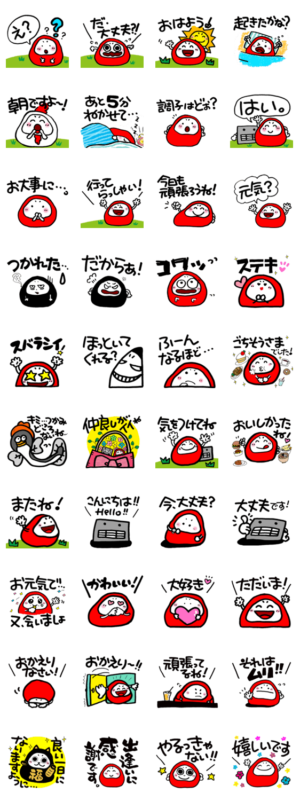 だるまんのラインスタンプ第三弾です! レアキャラの「うなどん」や「招き猫だるまん」が初登場!palpal より発売