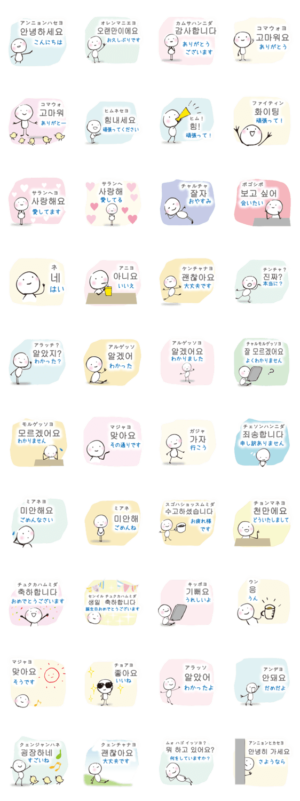 韓国語(ハングル)と日本語のバイリンガルスタンプ。ハングルを読むことができる。KPOP,韓流ドラマ好き韓国語を勉強、語学便利!外国語LINEスタンプ他多数 駐在 海外赴任