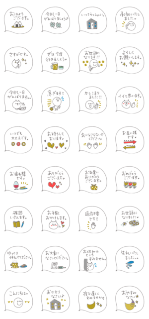 優しいくすみカラーできちんと伝えます。長く使えるベーシックセットです♪#はじめてのLINEスタンプにオススメmotto より発売