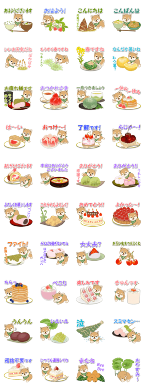 よちよち豆柴 おいしい春 スタンプ画像一覧