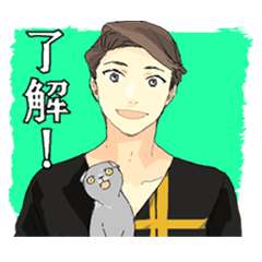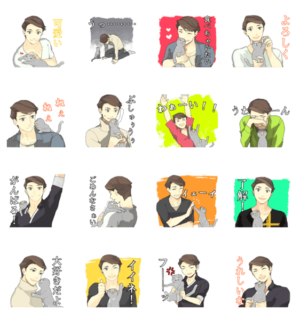 ねこのきもちの猫×イケメン『ねこと僕』スタンプ。モデルは俳優・舘野将平さんとロシアンブルーの猫です。(スタンプデザイン:たかむら)
