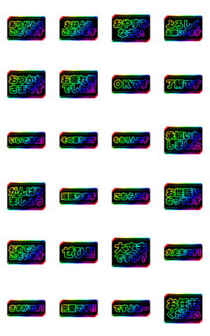 ゲーム好き&ゲーマーには必須のゲーミングデバイスのように、虹色に輝くスタンプ。第三弾は、新社会人や新成人が使いやすい敬語編。 #はじめてのLINEスタンプ にオススメ