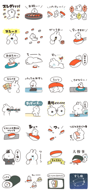 寿司とうさぎのスタンプです。ナポリ より発売