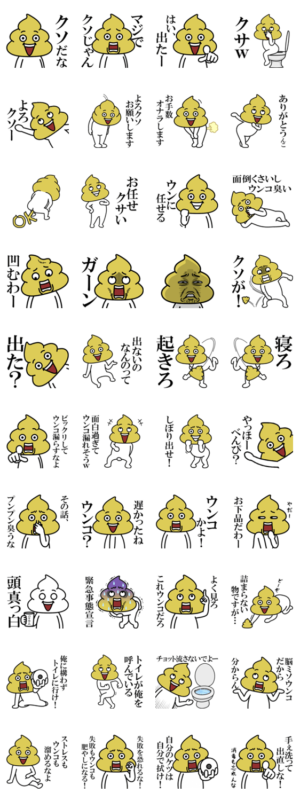 ウンコマン 5 スタンプに書いてある文字一覧