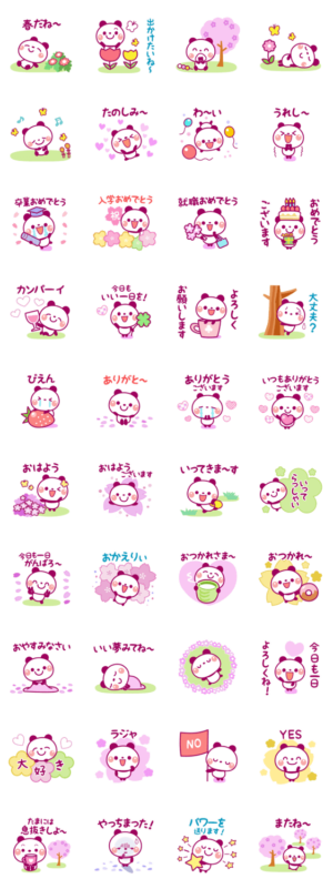 入学、卒業、就職祝い、お花見、新生活や日常に使えるパンダの「スプリングカラー」スタンプです♫プリン より発売