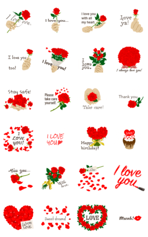 英語/バイリンガル『 愛してる 』薔薇の花 スタンプ画像一覧