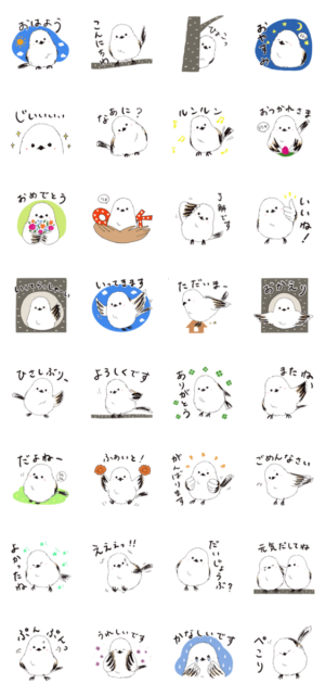 つぶらな瞳がかわいいシマエナガの毎日使えるスタンプです。すこし より発売