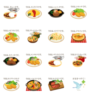 毎日毎日夕飯のメニューは何かと聞いてくるので、このスタンプで答えてます。