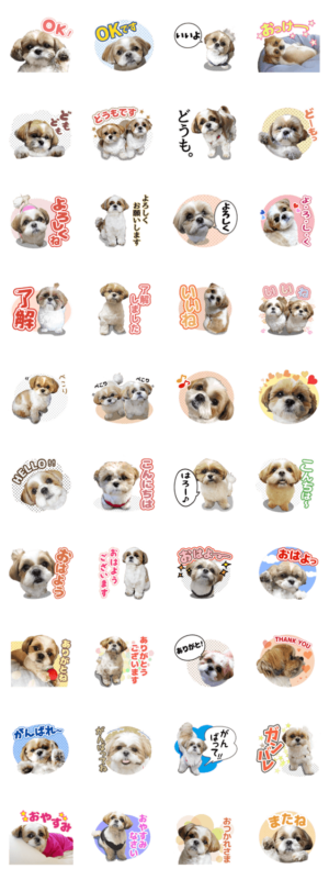 シーズー犬ぽんずとかぼすの実写スタンプ第2弾。毎日の会話によく使いそうな言葉を色々な表現でスタンプにしました。