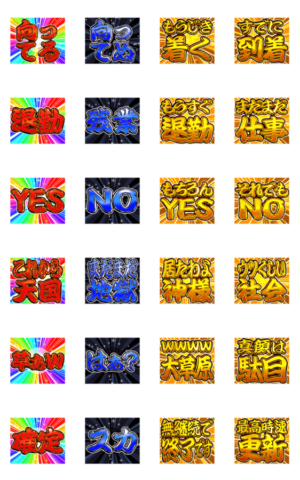 飛び出すリッチなテキストのスタンプ ポップアップ パチンコの衝撃をラインスタンプで再現 ゲームの激アツな感じが好きな人に向けた激しい煽り返信スタンプになります