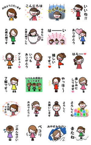 背景が動くよ。女の子達の挨拶スタンプのダウンロードはこちら↓