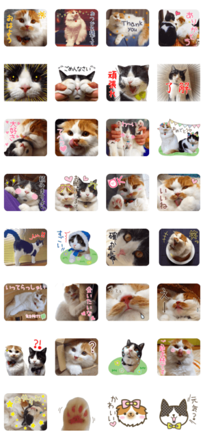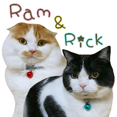 むぎのお友達、可愛い姉弟スコティッシュフォールドのラムちゃんと、ブリティッシュショートヘアのリックくん。猫ちゃんの実写・写真スタンプ。普段使い日常会話にどうぞ。