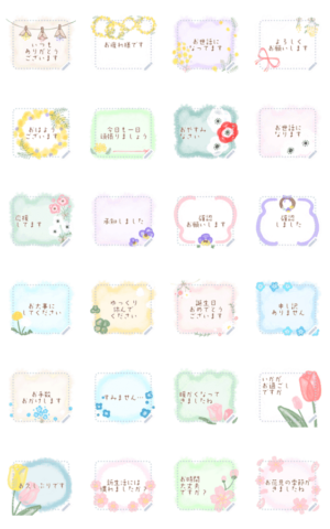 チューリップやミモザ、パンジー、ネモフィラなど春の訪れを感じる花。ふんわり優しい色合いで、水彩やクレヨン風なタッチ。自分でカスタムできるメッセージスタンプ。 現在この商品は一部のスマートフォン版LINE 10.3.0以上のトークルームでのみ使用できます。動作環境の最新情報はヘルプをご確認ください。真水 より発売