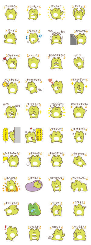 蛙をモチーフにしたゆるいスタンプです。かえる/どうぶつ/動物/動物園/アニマル/シュール/ユニーク/かわいい/ゆるかわ/ほっこり/まったり/無表情/シンプルくぱべる より発売