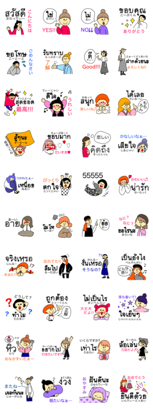 可愛くてシンプルな日本語とタイ語 スタンプ画像一覧