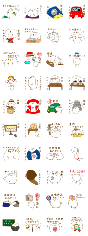 内定・還暦・進級・免許取得・独立・出演などなど。いろんなシーンでお祝いできるスタンプです。あなたにぴったりのおめでとうがきっと見つかるはず!