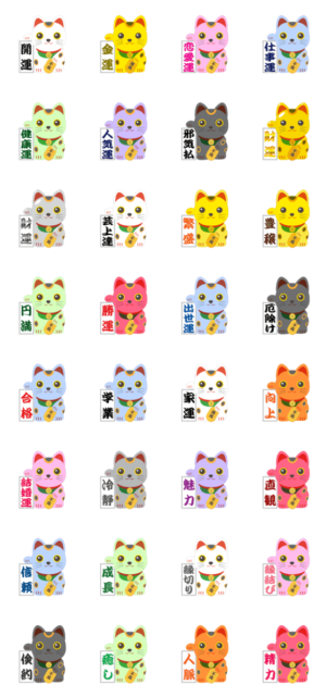 日本のラッキーアイテムのネコです。色によってご利益が変わります。恋愛、金運、合格祈願、健康など。ヨシダアカリ より発売
