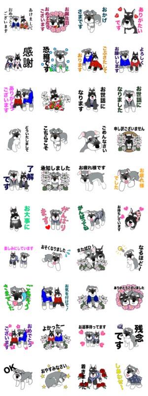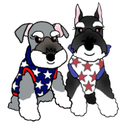 お寺の看板犬、ソルトアンドペッパーのおっとりジャックとブラックアンドシルバーのおてんばアリスです。ぜひ使ってください!