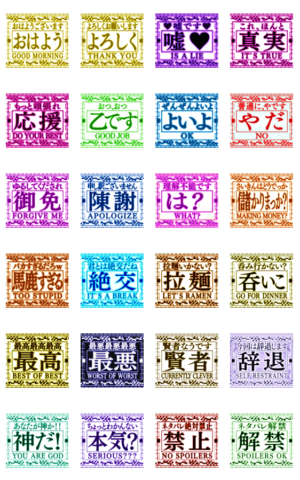 緊急事態をイメージしたポップアップスタンプ トーク画面でかっこよく動く ネタバレ禁止 解禁 賢者タイム おはよう 拉麺 呑いこ 陳謝 乙 嘘です エイプリルフールにも