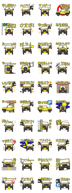 小さく軽い黄色4WDカーの日常会話スタンプのダウンロードはこちら↓