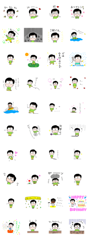 七三分けにメガネがトレードマークのおとうさんスタンプ第二弾です。可愛いおとうさんを楽しんでください。satomi より発売